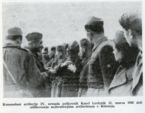 After him, a street (Ulica generala Levičnika) in the Koper district was named with a resolution on 23 February 1970 by the competent body of the Koper Municipal Assembly. This is the place where the Local Association of Combatants for the Values of the National Liberation War Olmo-Prisoje is to shortly erect a memorial plaque to Karel Levičnik that is now being prepared.