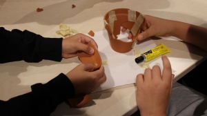 After an engaging discussion about various conservation techniques and the fascinating aspects of preserving museum artifacts, the children had the opportunity to try their hand at retouching and assembling fragments of a ceramic flower pot — with great success.