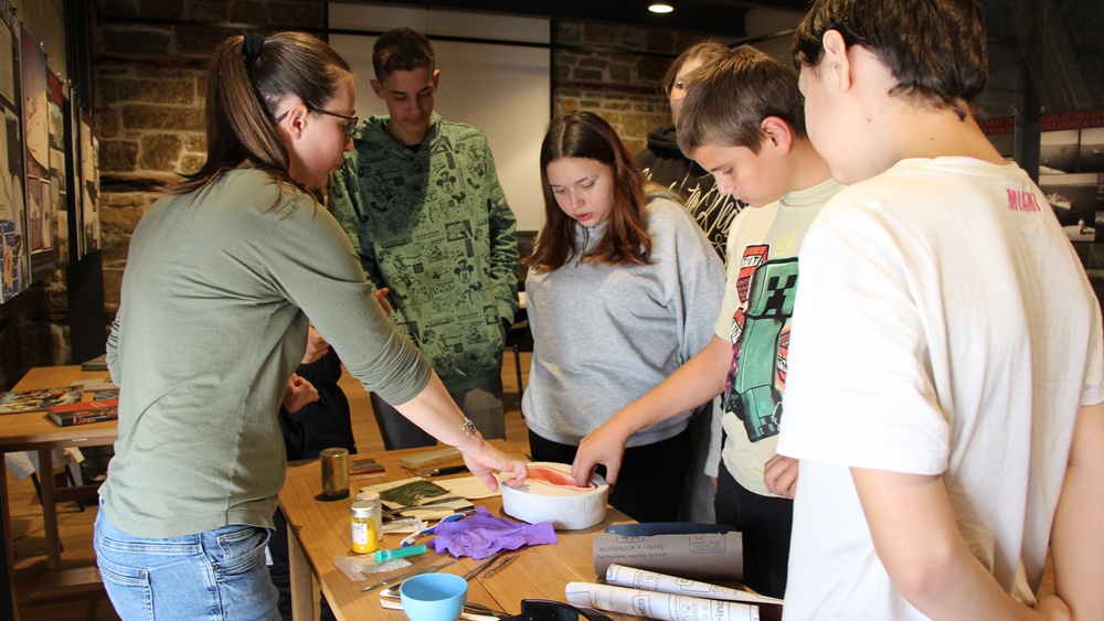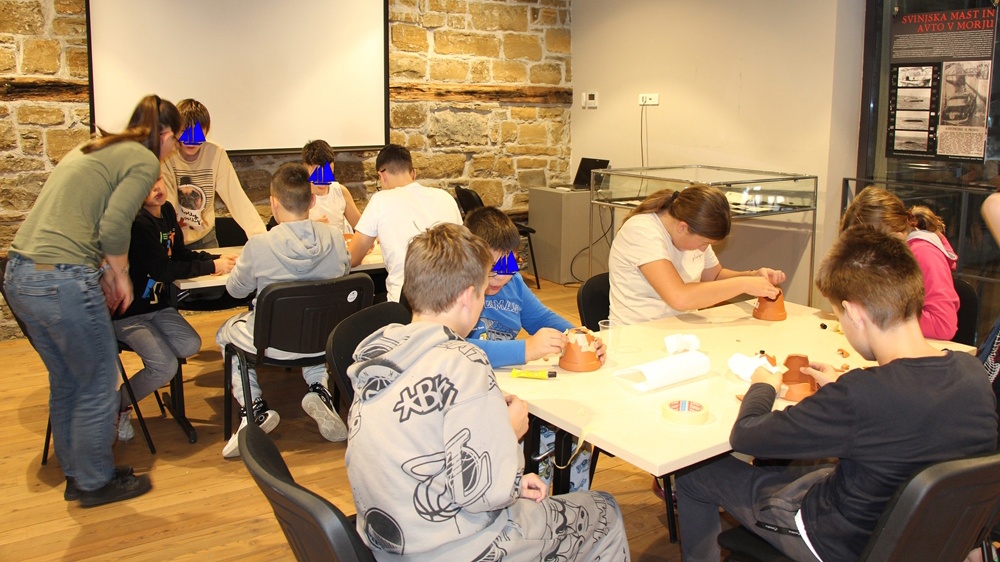 On Tuesday, October 14, 2025, we welcomed the students from the Centre for Communication, Hearing, and Speech Portorož (CKSG) to the former salt warehouse Monfort. During their visit, they met the museum’s conservator-restorer Ajda Purger, who introduced them to the profession responsible for the physical preservation of cultural heritage objects.