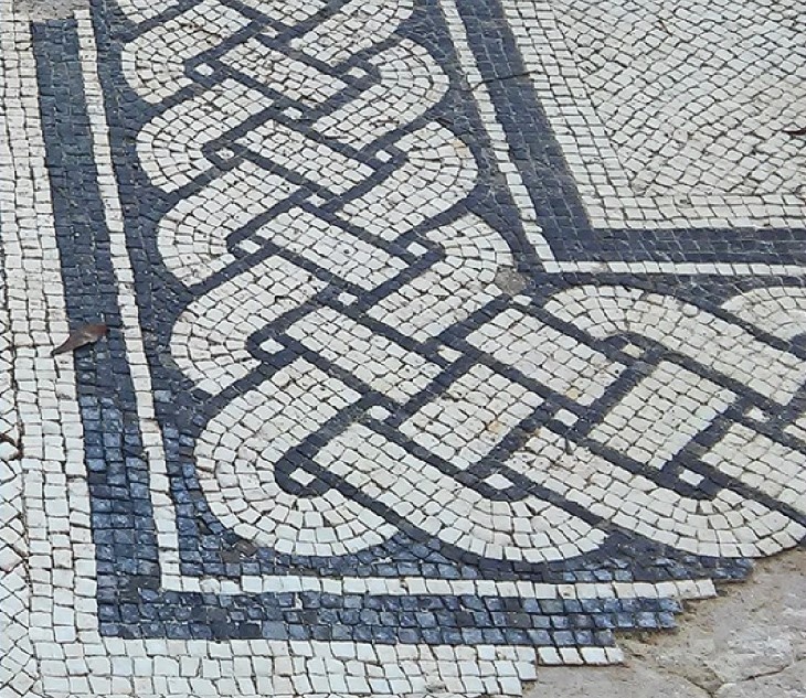 Rooms of the Roman villas were often decorated with rich black and white or coloured mosaics with geometric motifs or various depictions. The mosaics, which were composed of small stone cubes, were used to embellish pavings, at times also walls, when builders used, as indicated by the finds from Lovrečica in Croatia, even small cubes made of mountain crystal, which were even gilded, although the walls were mostly plastered and painted.
