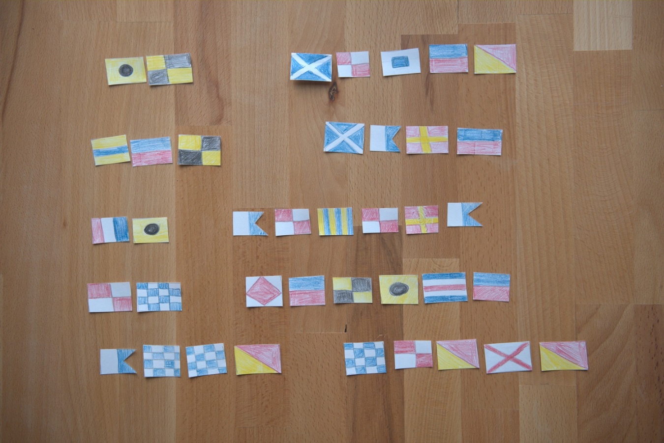 Ogni bandiera indica una singola lettera dell'alfabeto internazionale (lettere dalla A alla Z) e dieci numeri (da 0 a 9).