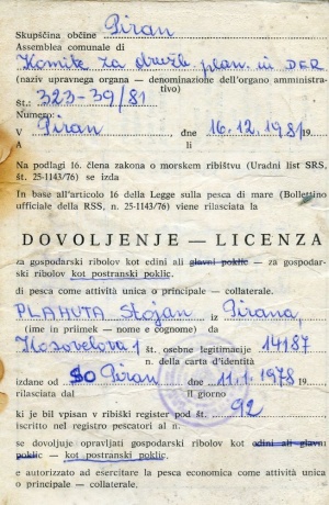 Stojan Plahuta, pescatore di Pirano (Capodistria, 12.5.1948 – Golfo di Pirano, 12.01.1995)