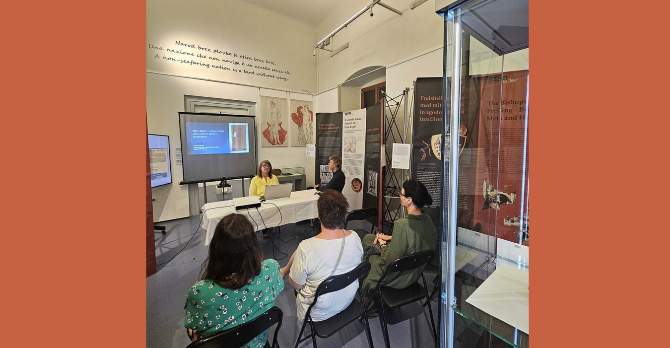Ob razstavi Dediščina in moč mitov smo v ponedeljek, 2. junija 2025, imeli priložnost prisluhniti izjemnemu predavanju ddr. Verene Perko »Skrivnosti oblečene in gole Afrodite«.