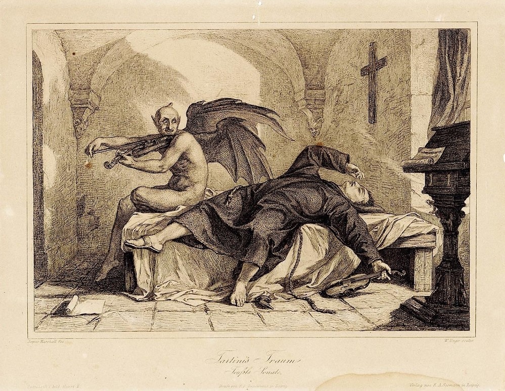 Verjetno si že slišal/a za njegovo najbolj znano skladbo, sonato Vragov trilček. Ali veš, kje in kdaj je Tartini dobil navdih zanjo? Zgodba pravi, da se je Tartiniju v sanjah prikazal sam vrag, mu rekel, da bo njegov služabnik in mu bo izpolnil vsako željo. Tartini ga je prisilil vzeti violino v roke, da mu je zaigral prav to melodijo. Ko se je Tartini zbudil, je skladbo hitro zapisal in tako ustvaril svojo najbolj znano skladbo.